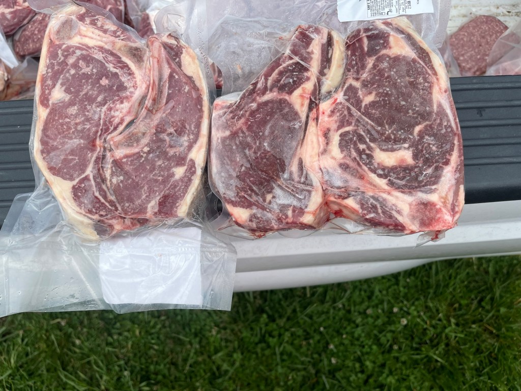 Beef– Available by the whole cow, 1/2 cow, 1/4 cow, or by the cut (including head, tongue, liver, heart, kidney, ox tail, soup bones and tallow) Ready Fall 2026